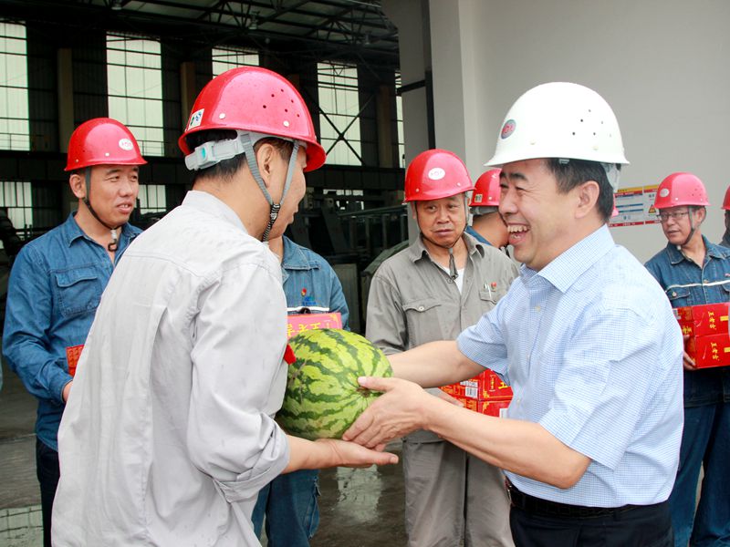 在鋁鎂合金分公司一通廊,公司領導李書平、寧文衛,監事會主席王志鋒與電解兩車間干部職工一起,從園區領導手中接過飲料、茶葉、西瓜、冰糖等夏季消暑降溫物品。禮輕人意重,通過開展送清涼活動,充分體現了管委會“服務轉型發展、服務入園企業、服務當地群眾”的“三服務”理念,受到廣大干部職工的普遍歡迎和好評。 |