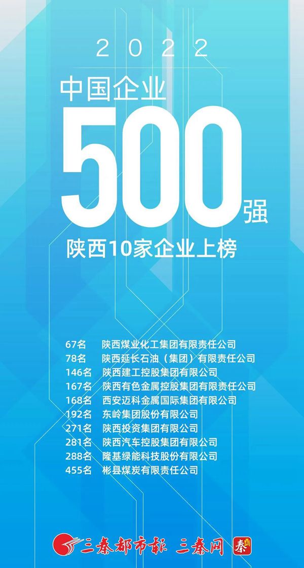 9月6日,中國企業聯合會、中國企業家協會發布“2022中國企業500強”榜單。陜煤集團以2021年實現營收3954億元位列第67位。陜西十家企業進入本次榜單,陜煤集團已2年蟬聯上榜陜企第一。 按照“靠科技創新引領、靠資本催化、靠體制賦能、靠合作借力”四大發展路徑,“十四五”期間,陜煤集團“16555”關鍵指標體系為以10萬產業工人、6000億元資產總額、支撐5000億元銷售收入和5000億元A股市值、實現500億元利潤,到2030年致力于實現“5個1”遠景目標,即集團資產總額超過10000億元,營業收入超過10000億元,市值超過10000億元,利潤總額超過1000億元,躋身世界一流企業行列。 此次榜單入圍門檻為446.25億元,較上年提高53.89億元。500強企業2021年營收總規模首次突破100萬億元大關,達到102.48萬億元,較上年增長14.08%,為近10年來的最大漲幅。營收超千億元企業數量增至244家,萬億俱樂部擴至12家。上榜企業行業結構持續優化,盈利水平總體改善,創新實力不斷積累,國際地位穩步提高,在做強做優做大等方面取得了新的進展。 |